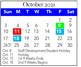 This White Settlement Isd instructional academic school calendar is extremely important as it keeps you informed of Blue Haze El grading periods, early dismissal dates, staff development days and holidays for the Blue Haze El calendar school year 2021-2022. As a parent and or student, you will find yourself needing this information on a regular basis, so please "like" and bookmark this page in a visible location within your favorite browser. The legend for this White Settlement Isd 2021-2022 calendar is at the bottom of the page. If you are browsing on your PC there is another copy of the legend in the right hand column.
